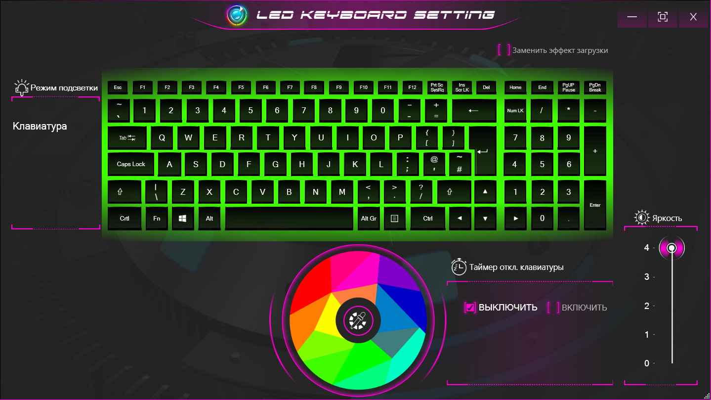 В разделе LED Keyboard можно изменять цвет подсветки клавиатуры.