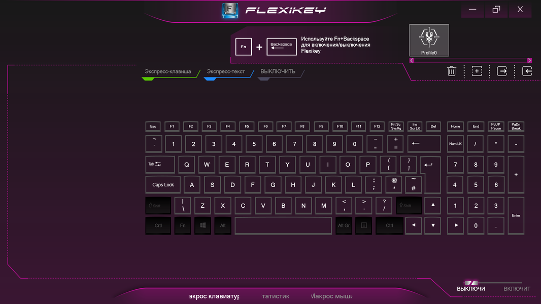 Клавиатура снабжена RGB-подсветкой, но цвета меняются для всех клавиш одновременно. Нет реализации динамических режимов с переливами и переходами, а равно и возможности назначения отдельным кнопкам других цветов. Доступно четыре уровнями по яркости (пятое состояние — подсветка выключена). Переключение производится повторными нажатиями аккордов Fn и +/− на цифровом блоке. Подсвечиваются сами символы на клавишах и их контуры. Зона подсветки под каждой клавишей видна при отклонении от клавиатуры, но светится мягко и не раздражает. Распределение света позволяет видеть символы русской раскладки.