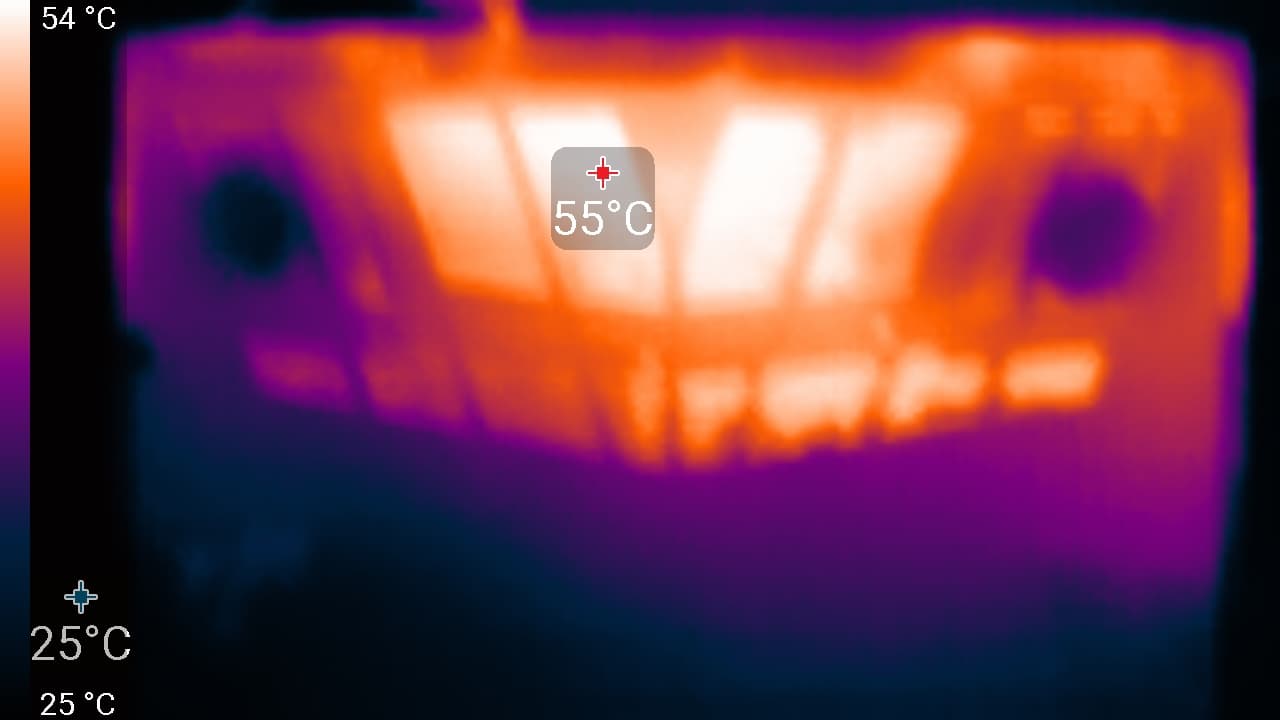 Внутренний объем ноутбука использован для целей охлаждения с максимальной эффективностью, и движение воздушных масс в трактах происходит одновременно в шести направлениях: относительно холодный забортный воздух поступает двумя потоками через отверстия в днище, а выброс горячего производится вентиляторами через четыре радиатора и их решетки (две назад, направо и налево).