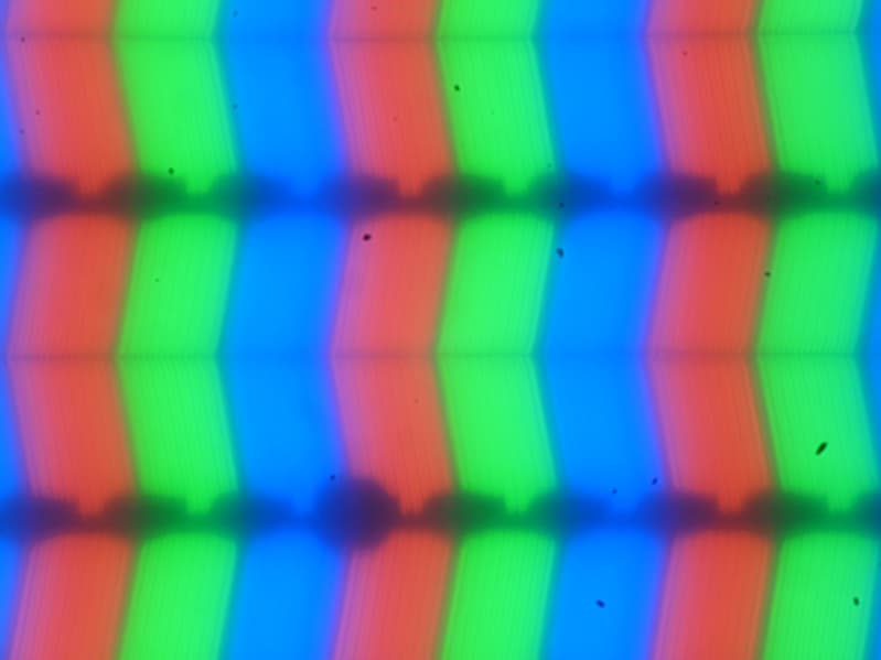 Внешняя поверхность матрицы черная, жесткая, полуматовая (зеркальность выражена). Какие-либо специальные антибликовые покрытия или фильтр отсутствуют, нет и воздушного промежутка. При питании от сети или от батареи и при ручном управлении яркостью (автоматической подстройки по датчику освещенности нет) ее максимальное значение составило 340 кд/м² (в центре экрана на белом фоне). Максимальная яркость довольно высокая, поэтому за ноутбуком как-то можно будет работать/играть на улице ясным днем, если расположиться хотя бы не под прямыми солнечными лучами.