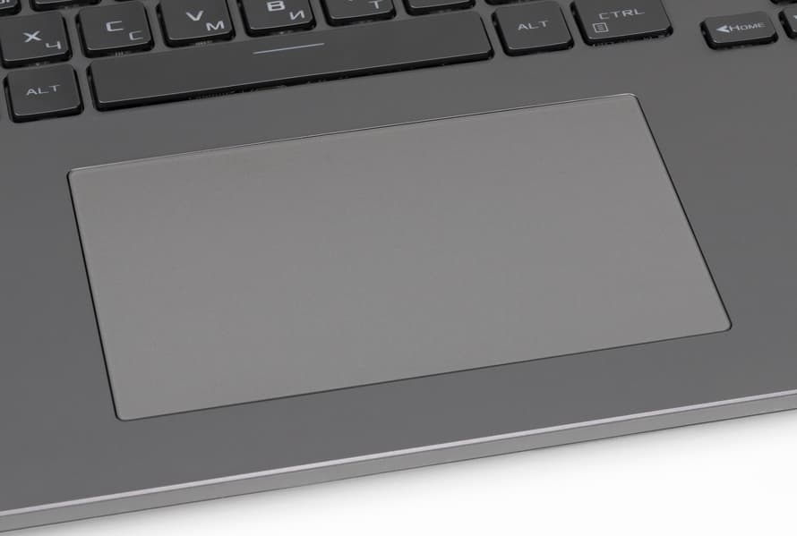 Тачпад здесь не классический, он не имеет выделенных кнопок, но нажатия, соответствующие использованию кнопок мыши (внизу слева и справа) сопровождаются отчетливыми щелчками и соответствующими живыми откликами. Кликпад достаточно просторный и удобный в пользовании.