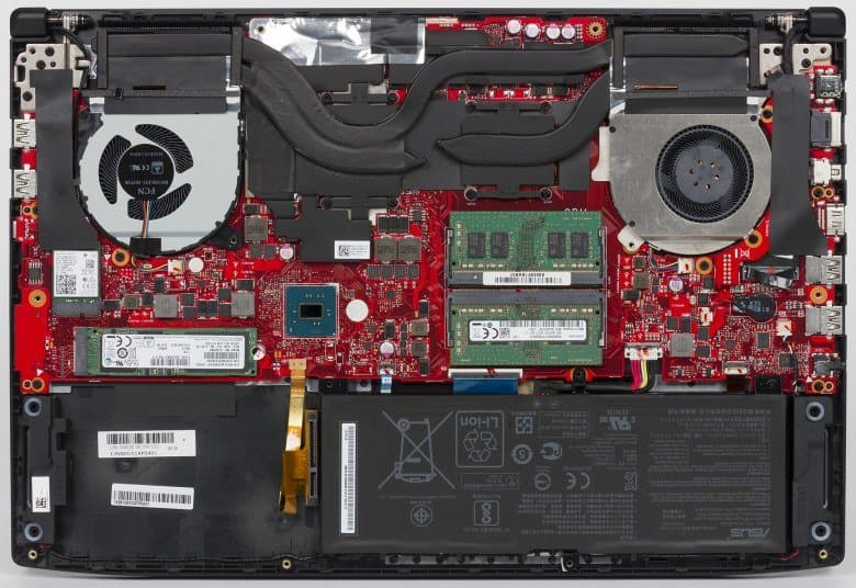 Система охлаждения ноутбука Asus ROG Strix GL503VS Scar Edition включает в себя два низкопрофильных вентилятора. Один вентилятор предназначен для процессора, а другой — для видеокарты. Остается выяснить, насколько шумной является такая система охлаждения.