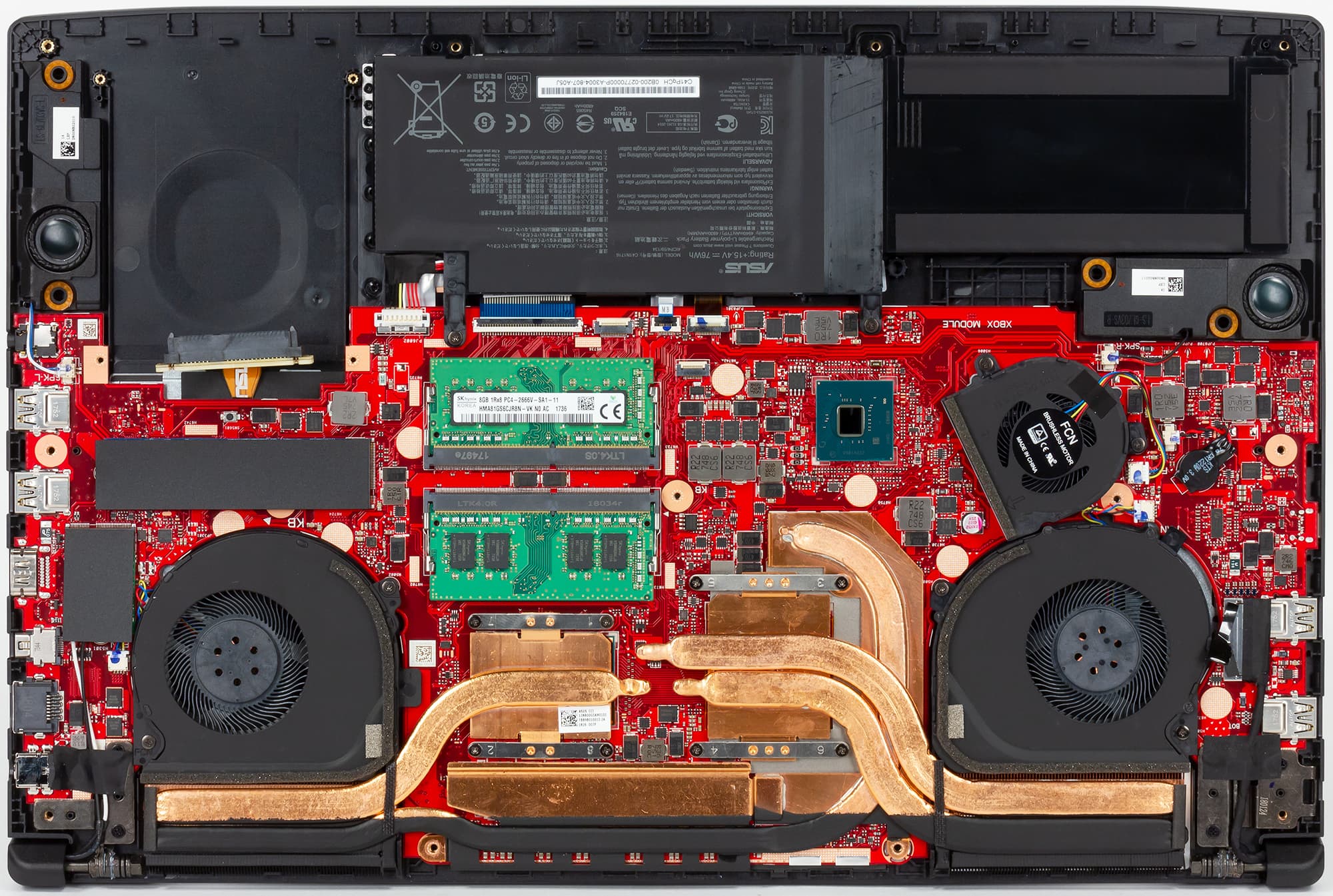 Судя по информации на сайте производителя, конфигурация ноутбука Asus ROG Strix GL703GM может быть различной. Отличия могут заключаться в модели процессора, объеме оперативной и видеопамяти, а также конфигурации подсистемы хранения данных. У нас на тестировании была модель следующей конфигурации: