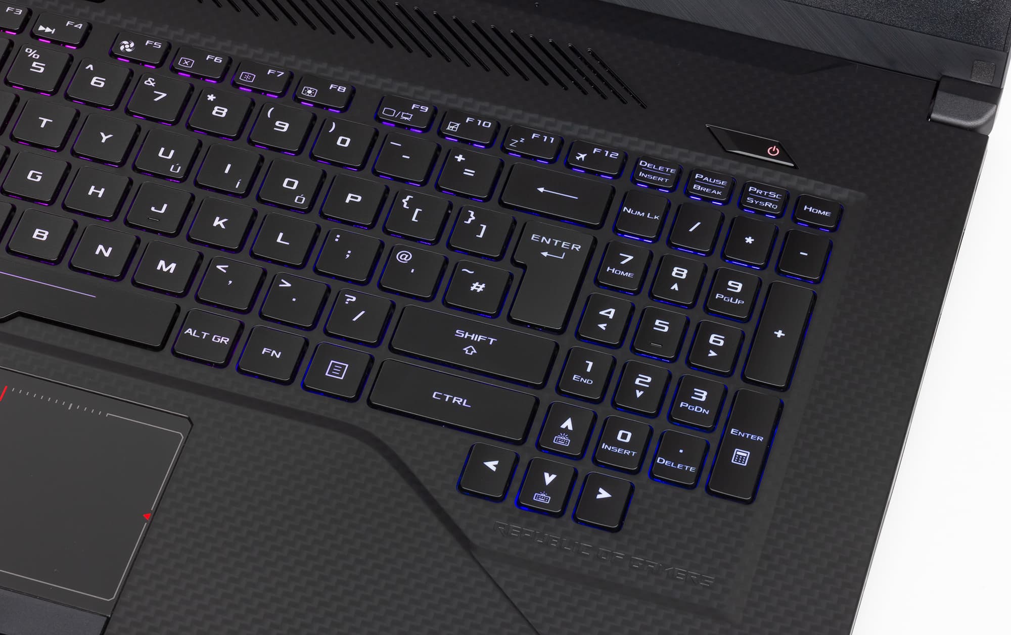 В ноутбуке Asus ROG Strix GL703GM используется клавиатура мембранного типа с увеличенным расстоянием между клавишами.