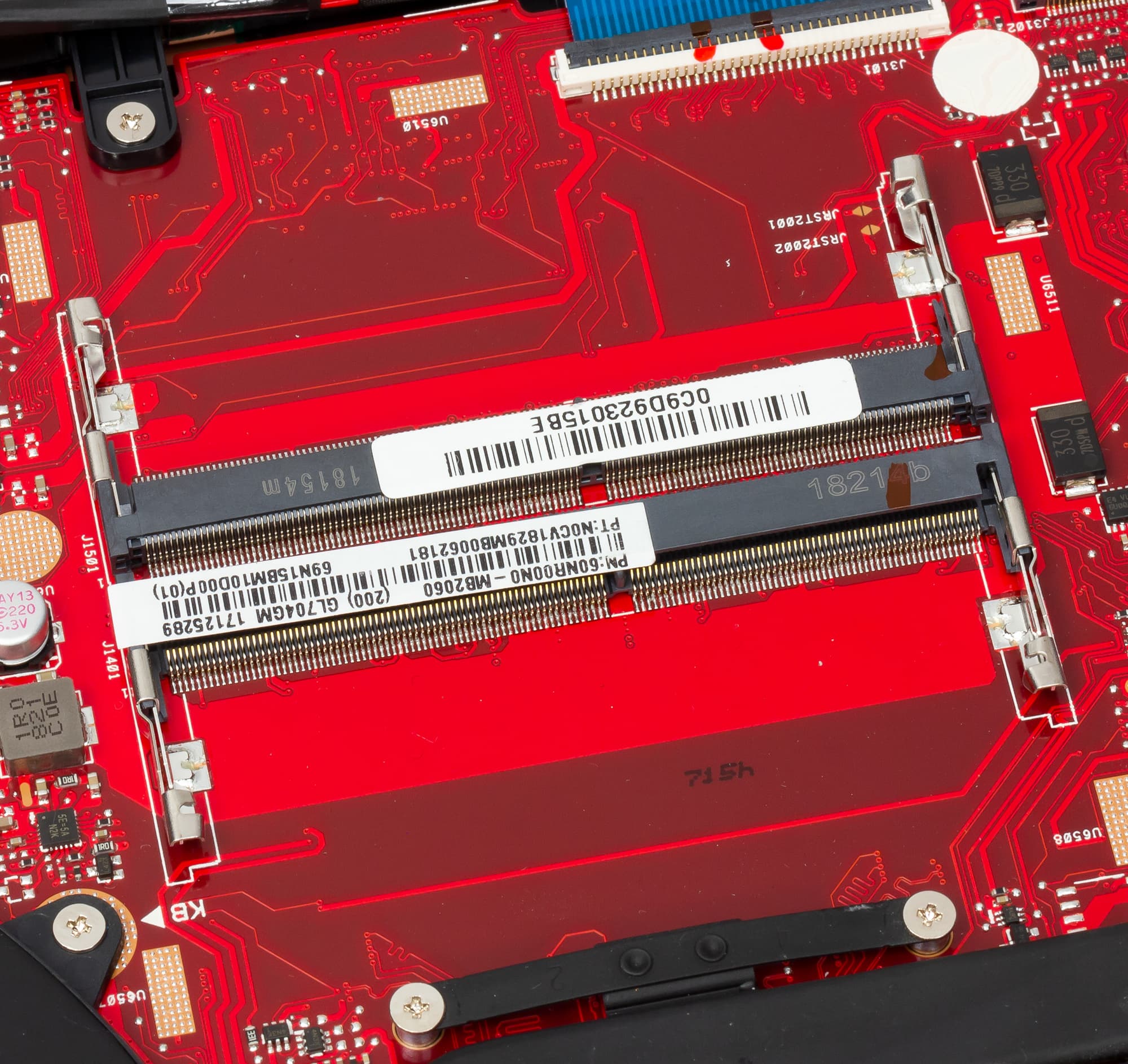 Для установки SO-DIMM-модулей памяти в ноутбуке предназначено два слота.