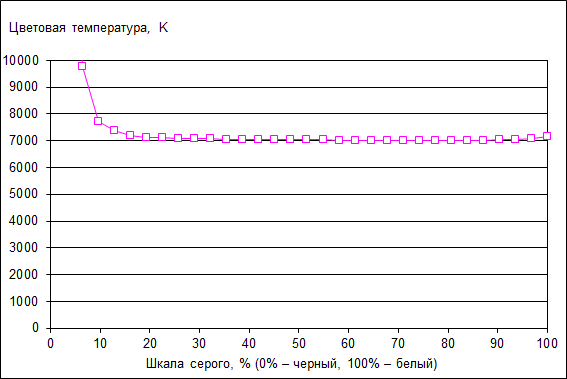 Стабильность цветовой температуры объясняется тем, что основные цвета стабильны по всей шкале серого.