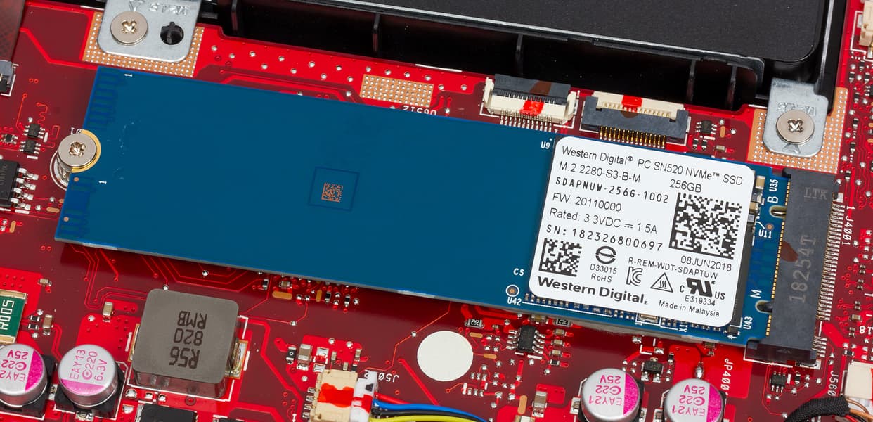 SSD-накопитель WDC PC SN520 установлен в разъем M.2, имеет форм-фактор 2280 и интерфейс PCIe 3.0 x4.