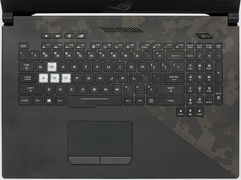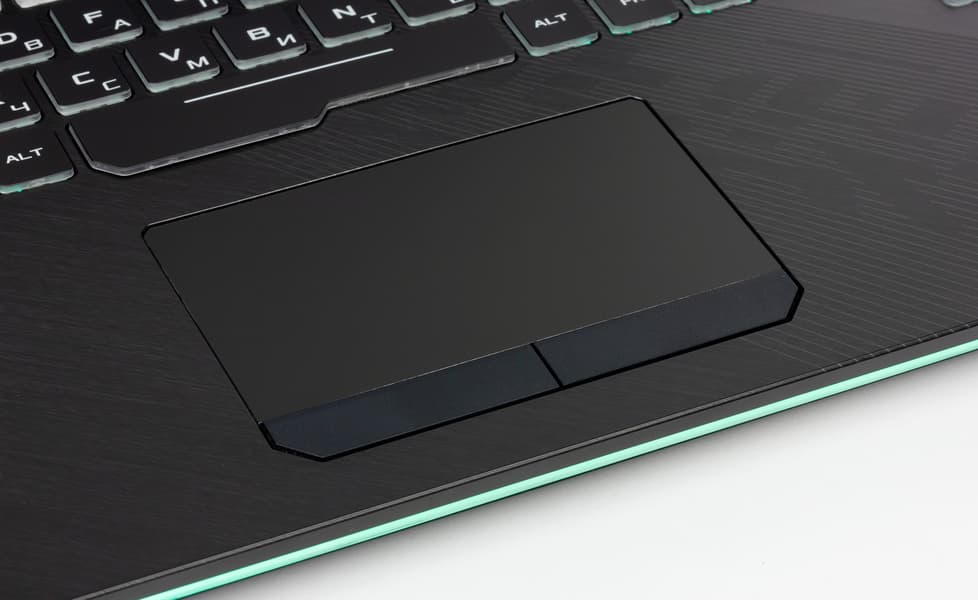 В ноутбуке Asus ROG Strix GL704GM Scar II используется классический тачпад с двумя кнопками. Размеры его сенсорной поверхности составляют 108×59 мм. Сенсорная поверхность тачпада немного заглублена. Работать с ним очень удобно.