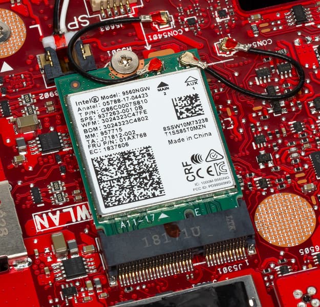 Коммуникационные возможности ноутбука определяются наличием беспроводного двухдиапазонного (2,4 и 5 ГГц) сетевого адаптера Intel Wireless-AC 9560 (CNVi), который соответствует спецификациям 802.11a/b/g/n/ac и Bluetooth 5.0.