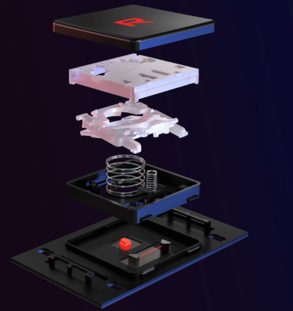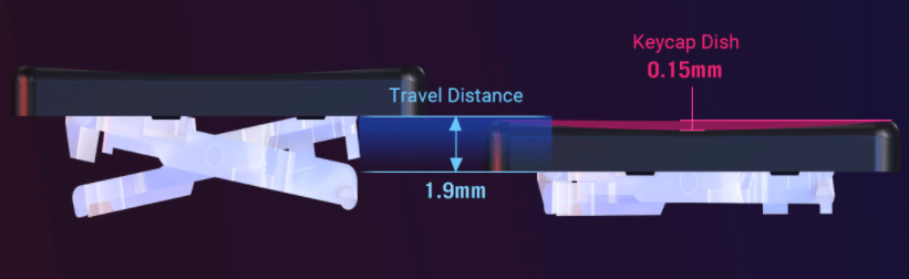 В первую очередь, это очень надежный механизм, выдерживающий до 100 миллионов нажатий, что особенно важно в моменты эмоциональных игровых баталий. Одновременно с этим, такие клавиши имеют время срабатывания всего 0,2 мс (примерно в 25 раз быстрее механической клавиши), увеличенный до 1,9 мм ход и вогнутость на 0,15 мм.