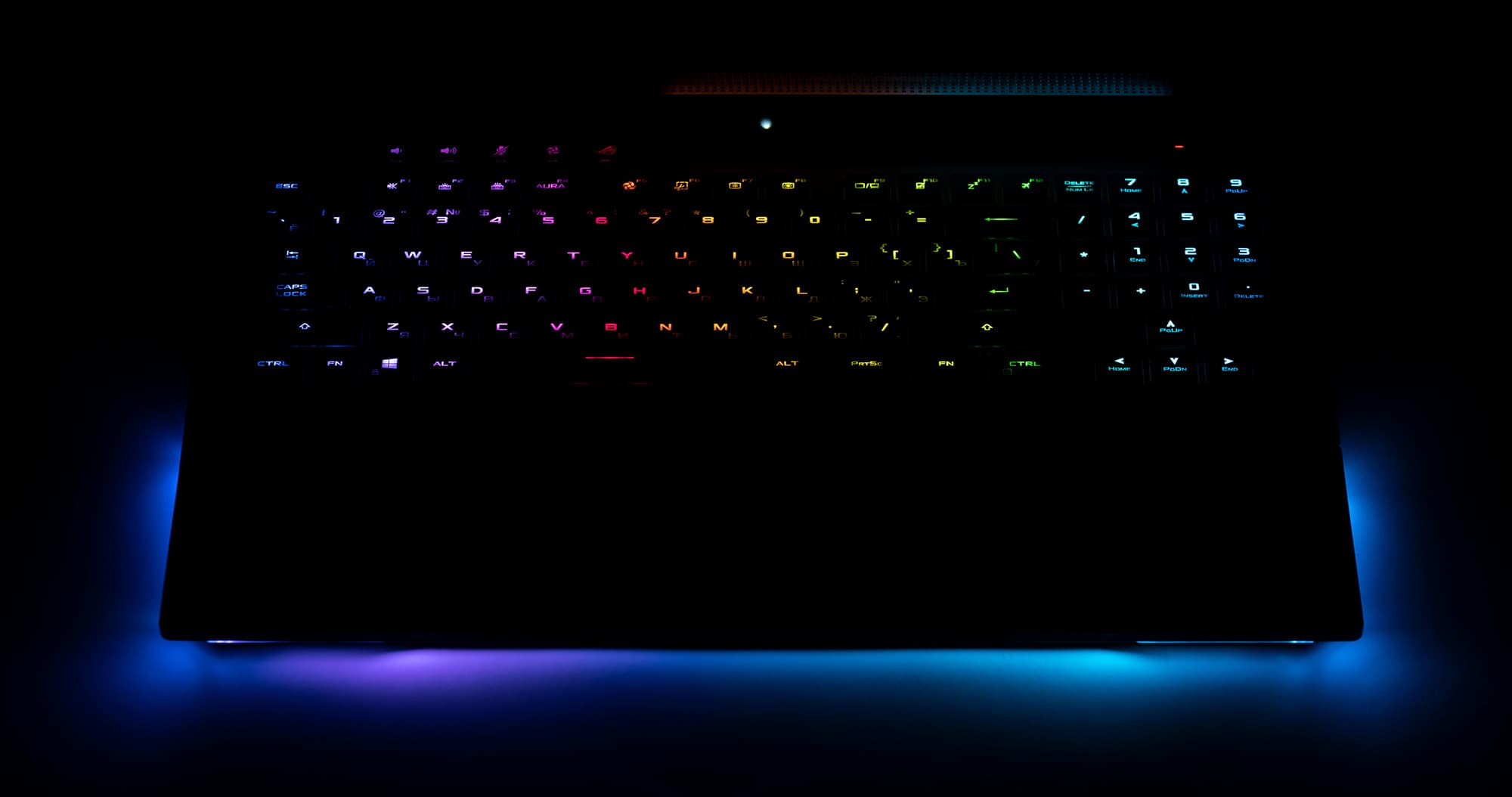 Кроме этого, клавиатура оснащена настраиваемой и синхронизируемой с другими устройствами подсветкой, которая хорошо гармонирует с подсветкой основания корпуса ноутбука.