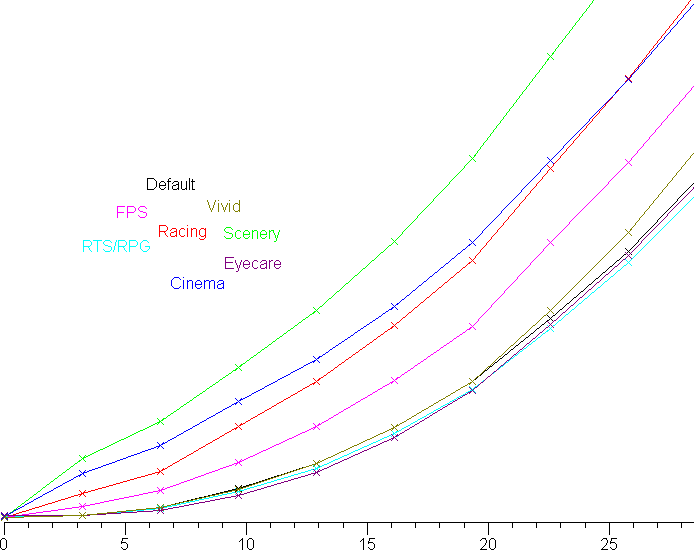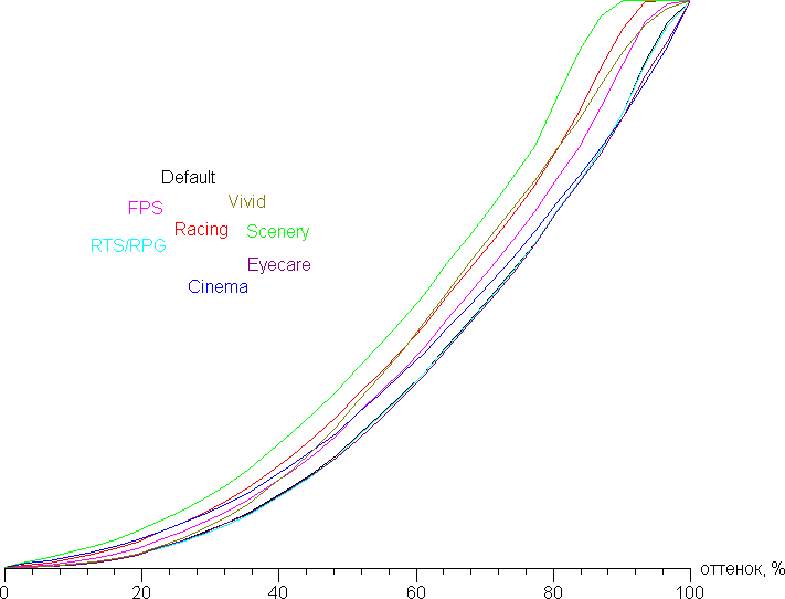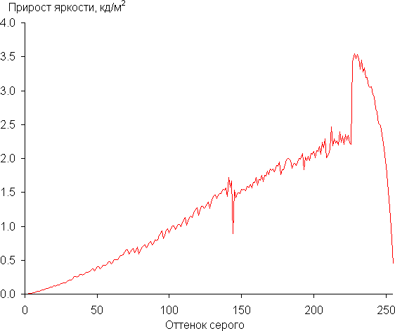 Амплитуда всплесков низкая, поэтому ни к каким артефактом такой разгон не приводит. В фирменной утилите разгон якобы можно выключить/включить, но по факту время отклика, как и вид графиков, не меняются, то есть соответствующая настройка ничего не делает. Производитель указывает для примененной матрицы время отклика 3 мс, и действительно, переходы между некоторыми полутонами серого выполняются даже за меньшее время.