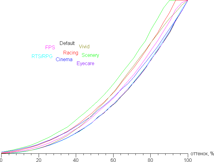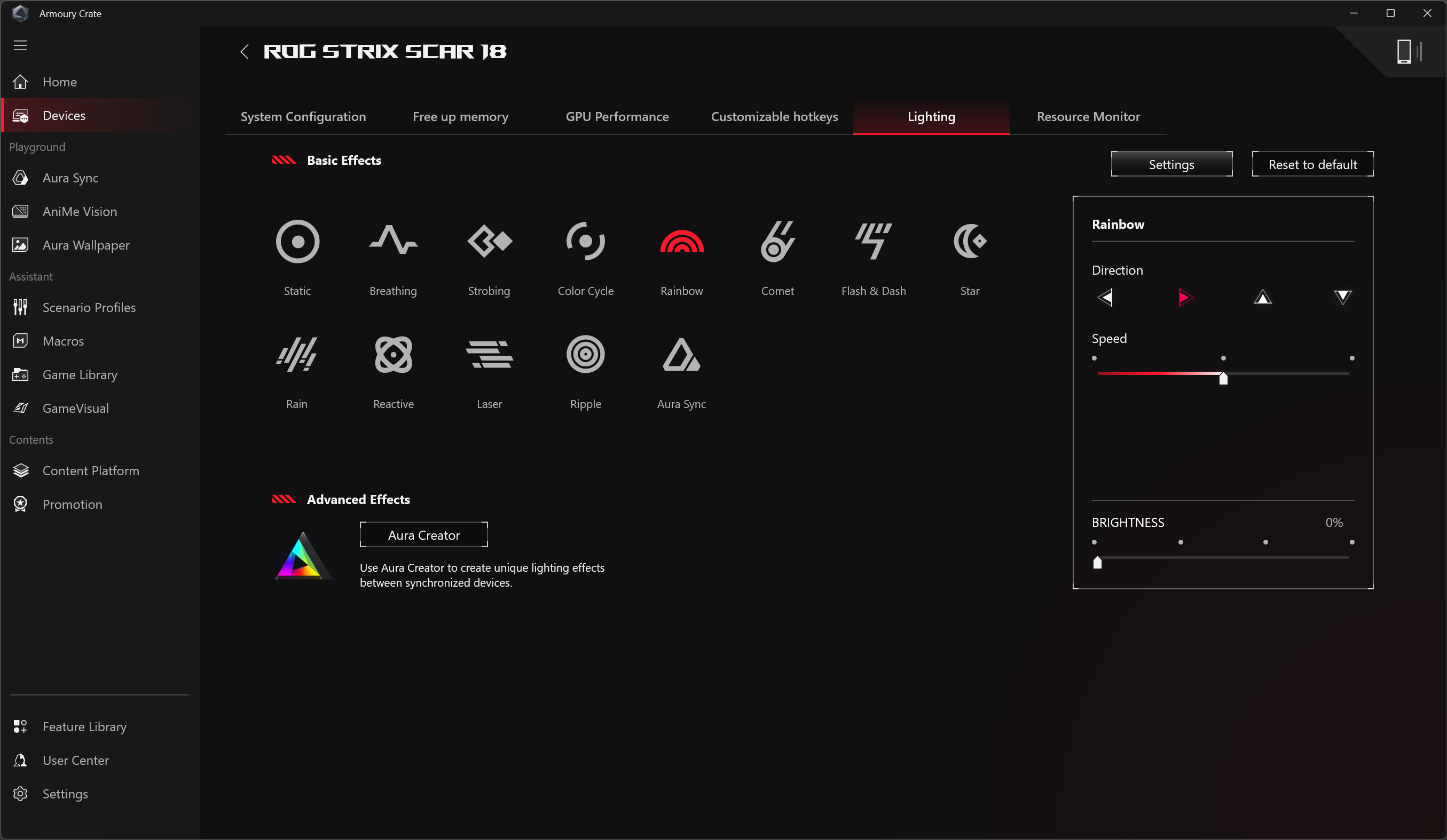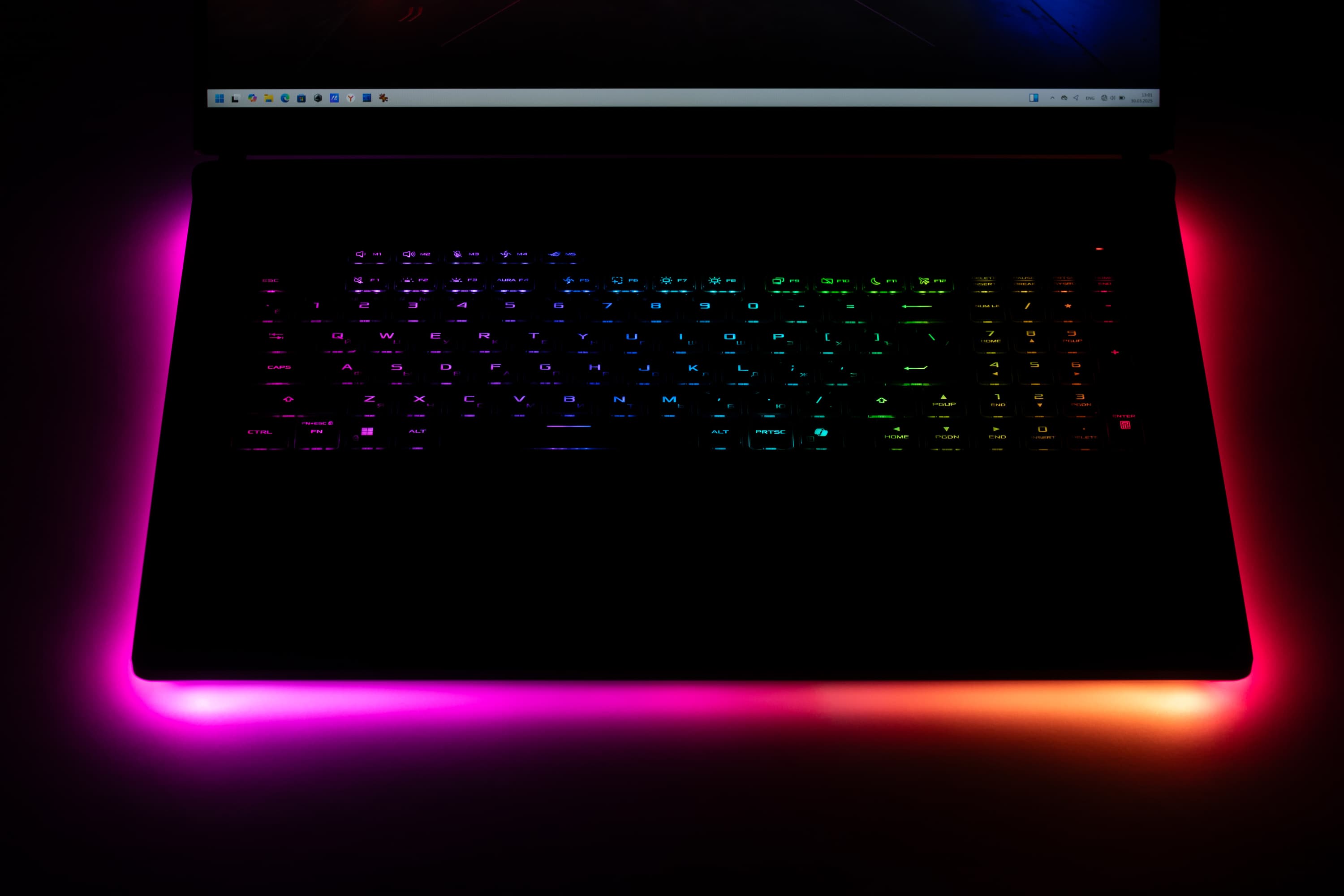 Клавиатура снабжена динамической подсветкой (per key RGB) с тремя уровнями яркости (четвертое состояние — подсветка выключена). Увеличение свечения производителя аккордом Fn+F3, уменьшение — Fn+F2. Подсвечиваются сами символы на клавишах и немного их контуры.