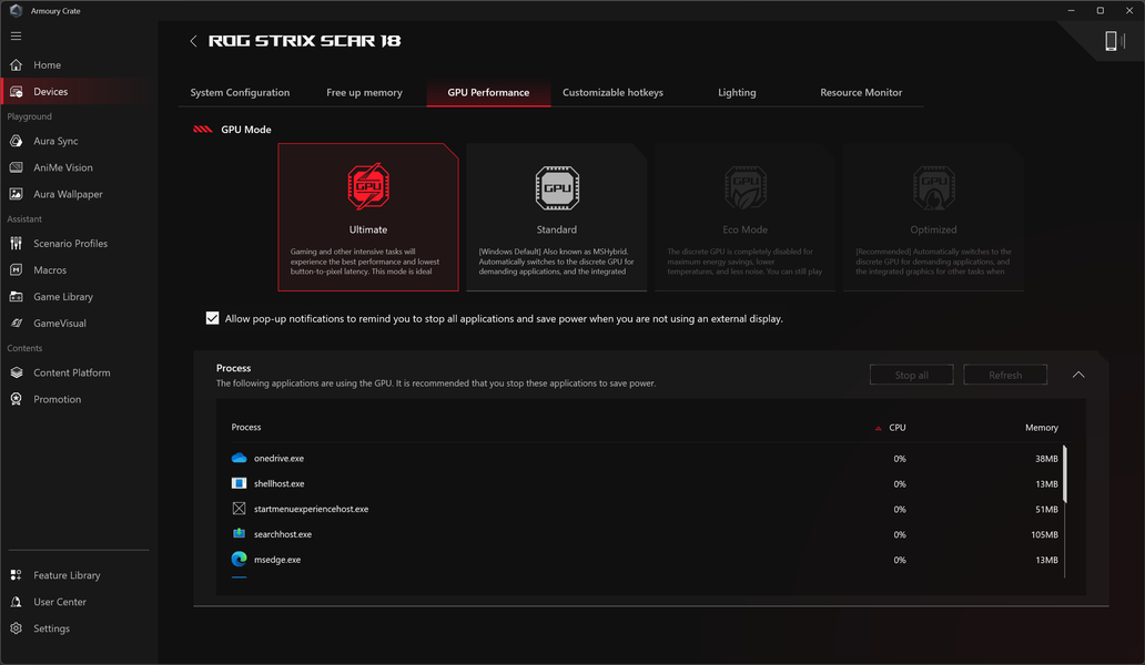 Asus ROG Strix Scar 18 G835LX располагает интегрированным видеоускорителем Intel Xe Graphics, но для игр и приложений, умеющих задействовать дискретную графику, установлена топовая видеокарта новейшего поколения Nvidia GeForce RTX 5090 Laptop.