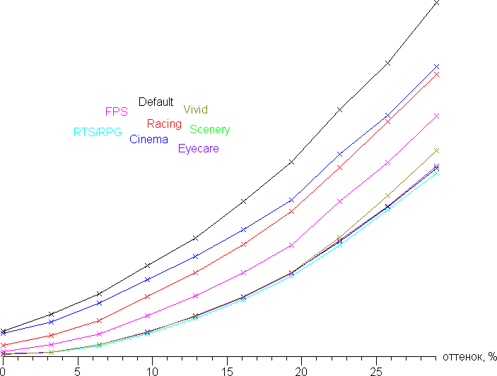 Зона подсветки под клавишами почти не видна. Распределение света не позволяет различить символы кириллицы.