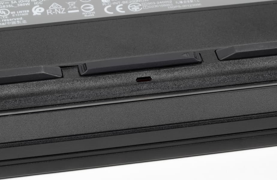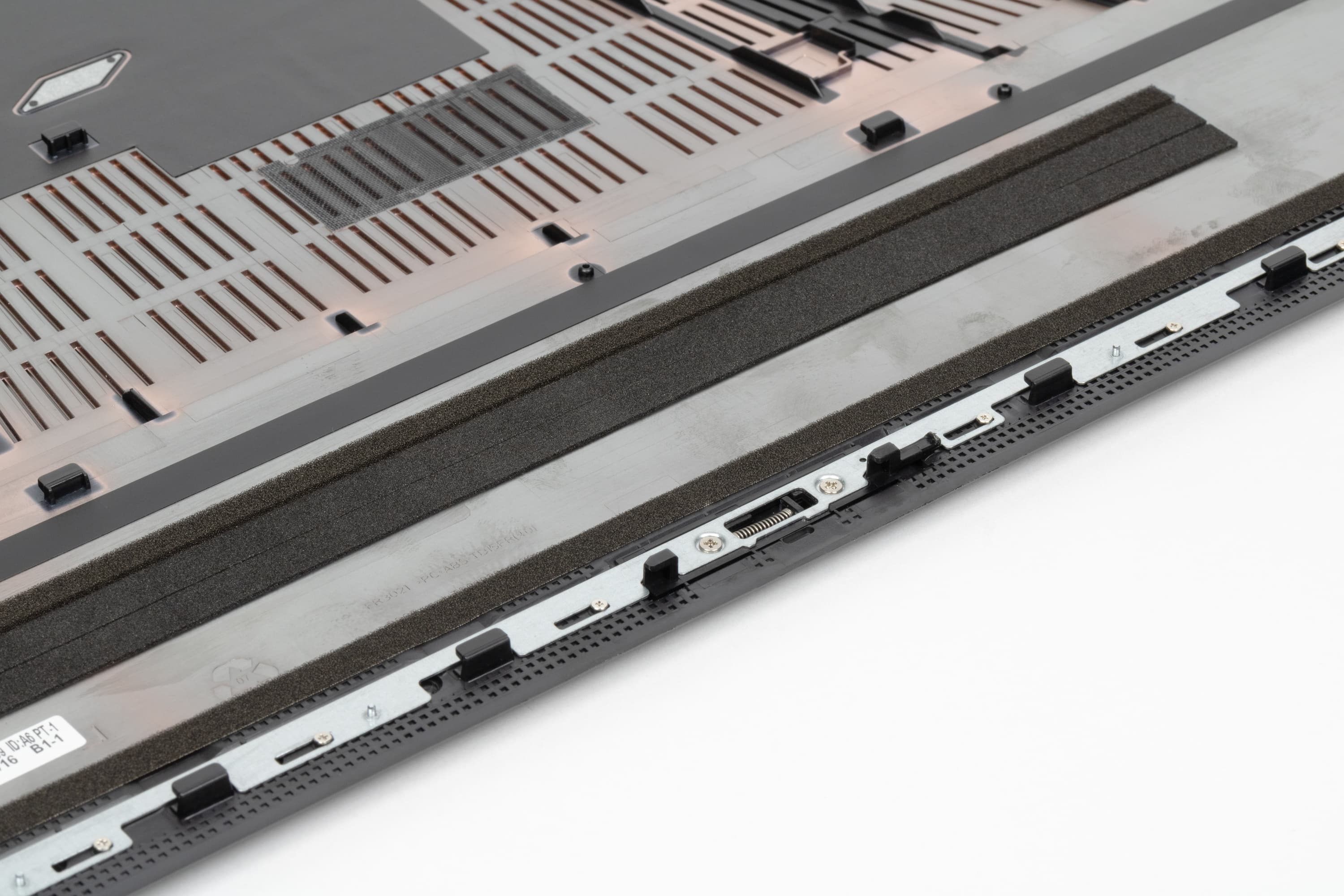 Задняя панель почти целиком занята массивной решеткой, через которую из внутреннего пространства ноутбука наружу выбрасывается нагретый воздух.