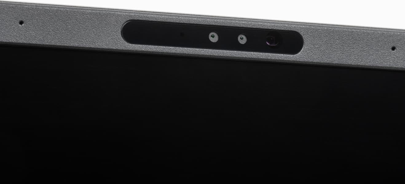 В центральной части верхней рамки установлена миниатюрная веб-камера с разрешением видео 1920×1080 с двумя микрофонами и ИК-датчиком для поддержки Windows Hello. Механической шторки нет.