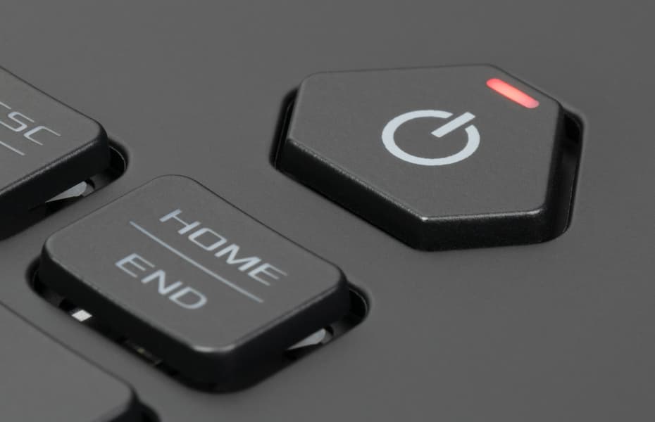 Кнопка включения питания расположена выше других, возле правой петли крышки. По форме и размерам она отличается, поэтому ее сложно перепутать с другими. Эта кнопка имеет собственный светодиодный индикатор красного цвета.