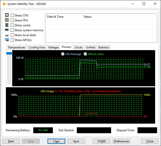 Температура процессора в таком режиме загрузки стабилизируется на уровне 80 °C, а мощность энергопотребления — на уровне 70 Вт.