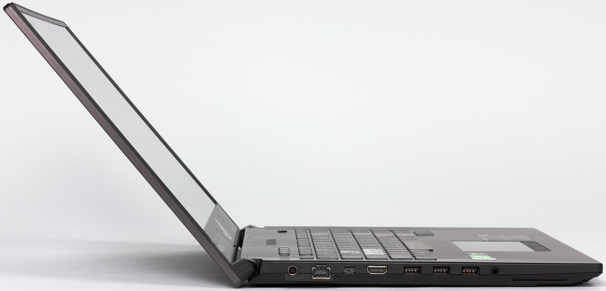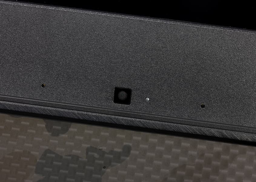 Толщина рамки вокруг экрана с боков и сверху — всего 7 мм, поэтому веб-камера и микрофоны расположены на нижней части рамки экрана. Тут же расположен и зеркальный логотип серии ROG.