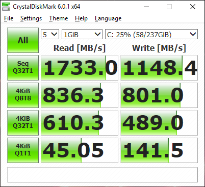 Интерес представляют, в первую очередь, скоростные характеристики SSD, который используется в качестве системного накопителя.