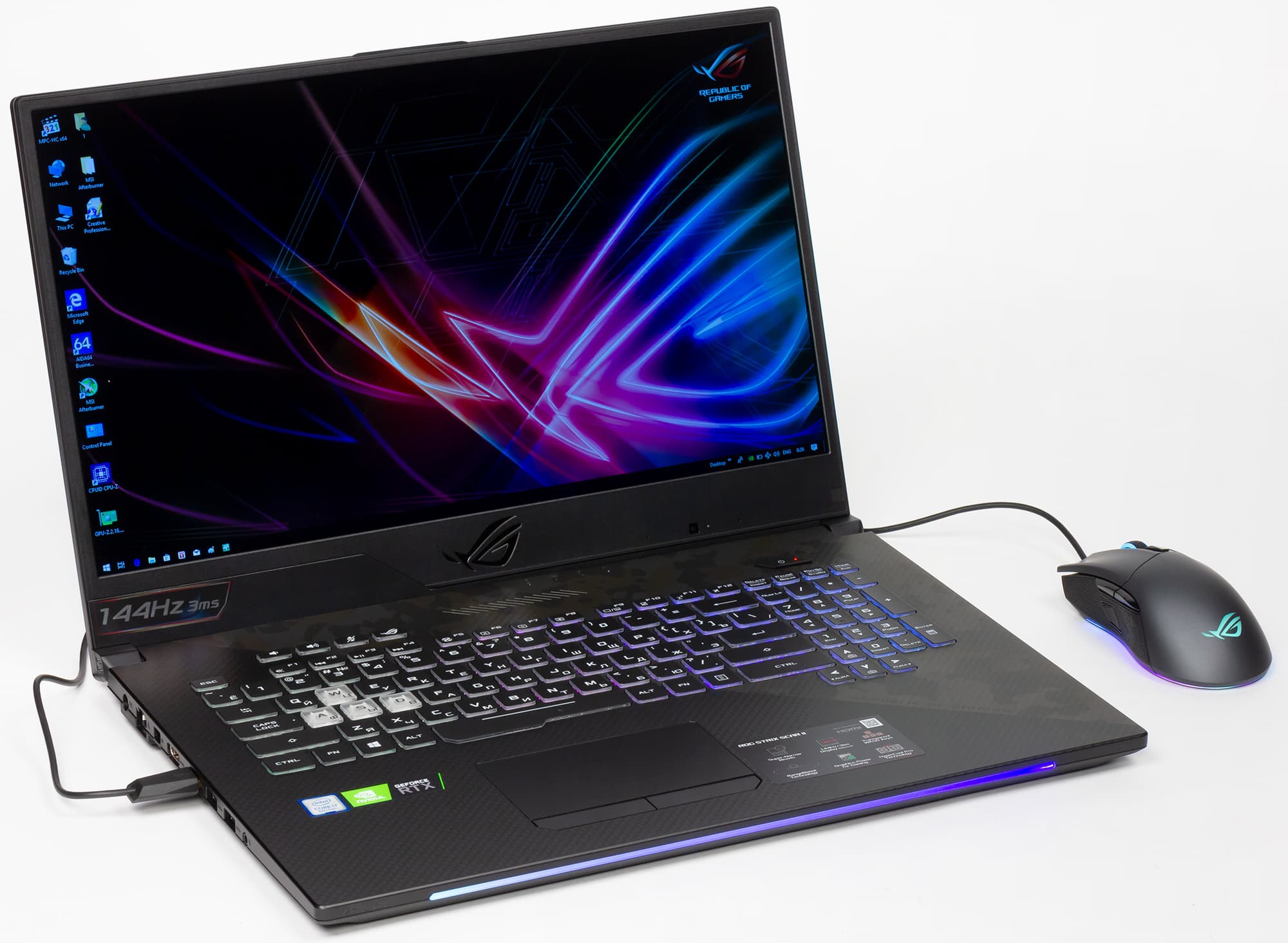 Попутно отметим, что расшифровка наименования модели следующая: буква G после цифр означает, что в ноутбуке используется процессор Intel Core 8-го поколения, а следующая за ней буква обозначает модель установленной видеокарты. Буква Y соответствует видеокарте Nvidia GeForce RTX 2080, буква W — видеокарте Nvidia GeForce RTX 2070, а буква V — видеокарте Nvidia GeForce RTX 2060.