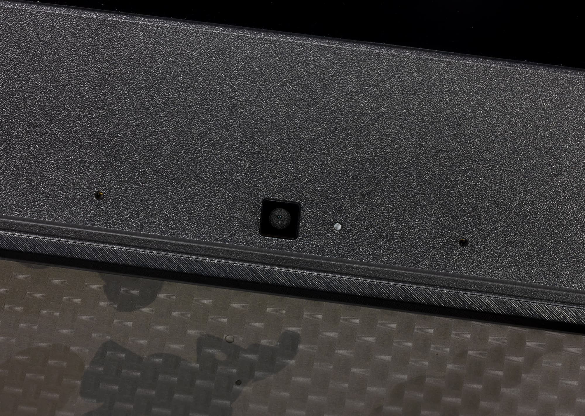 Рабочая поверхность ноутбука, обрамляющая клавиатуру и тачпад, выполнена из пластика, текстурированного под армированное стекловолокно. Данная поверхность также делится диагональю на две части, одна имеет камуфляжный рисунок. Поверхность является немаркой — на ней практически незаметны следы от пальцев.