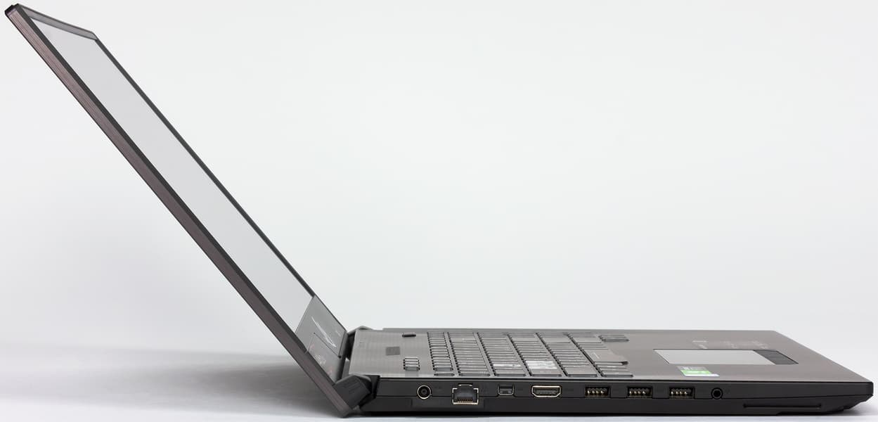 Углы обзора экрана ноутбука Asus ROG Strix Scar II GL704GV очень широкие. Фактически, можно смотреть на экран ноутбука под любым углом.