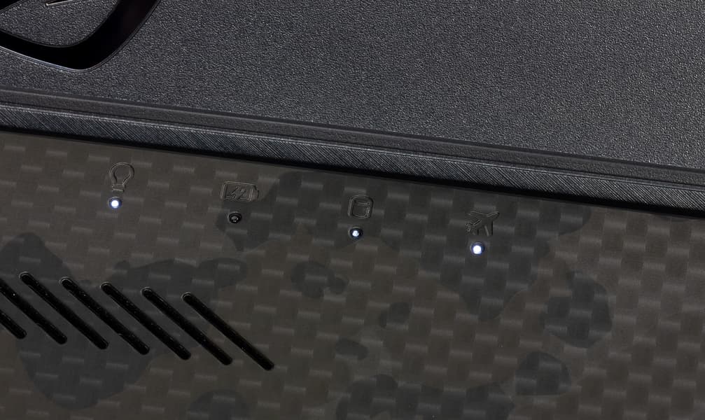 В левом углу рабочей поверхности, над клавиатурой, есть четыре отдельные клавиши управления ноутбуком: клавиша с эмблемой ROG, предназначенная для запуска фирменного приложения Armoury Crate, клавиша включения/отключения микрофона и две клавиши управления громкостью звука.