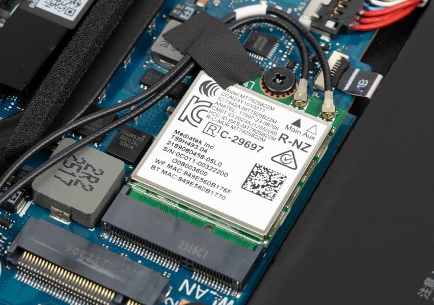 | Wi-Fi | MediaTek MT7925B22M Wi-Fi 7 802.11be | Intel AX211D2W Wi-Fi 6E 802.11ax | Intel Killer BE200NGW, Wi-Fi 7 802.11be |