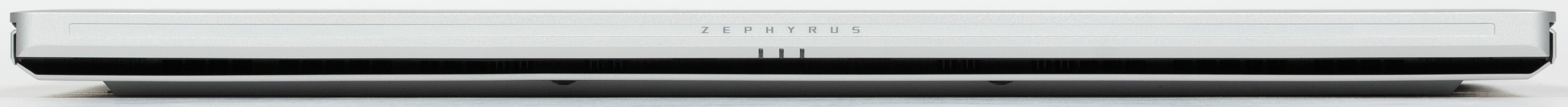 На задней панели заметка надпись Zephyrus и три светодиодных индикатора на кромке крышки. Если пользователю понадобится проконтролировать их состояние, он как ни в чем не бывало развернет устройство на 180 градусов, а затем вернет его в прежнее положение. По нашему разумению, подобное решение достойно анекдота.