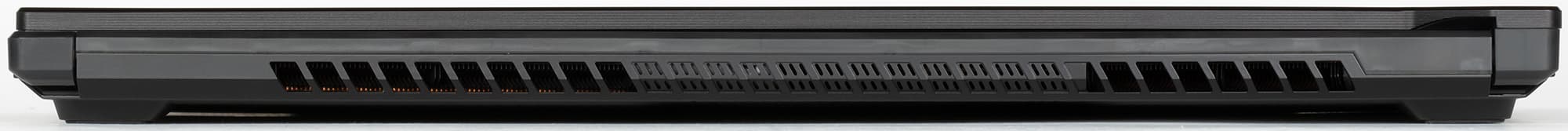 На днище корпуса можно увидеть вентиляционные отверстия, расположенные в основном у кулеров, и площадь их невелика. Однако, как мы уже сказали, при работе холодный воздух можно забирать и из-под приподнятой клавиатуры. Также у переднего края корпуса на днище выведены отверстия двух основных динамиков (всего их у ноутбука шесть).