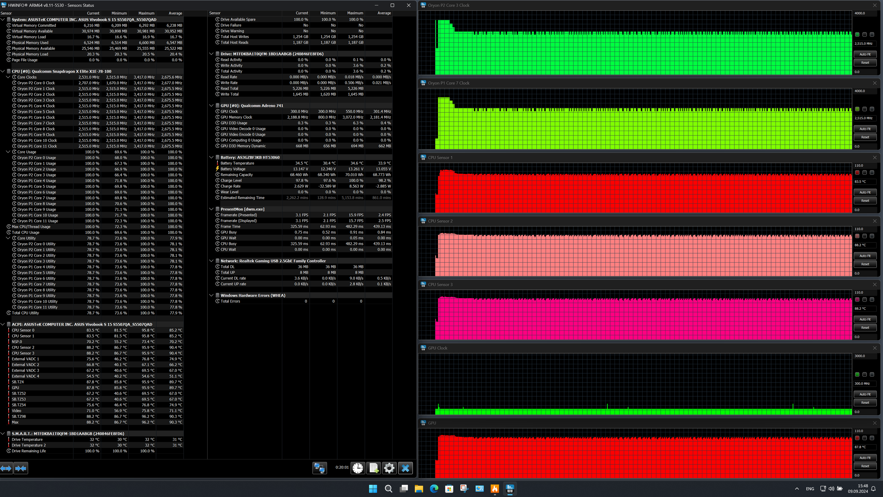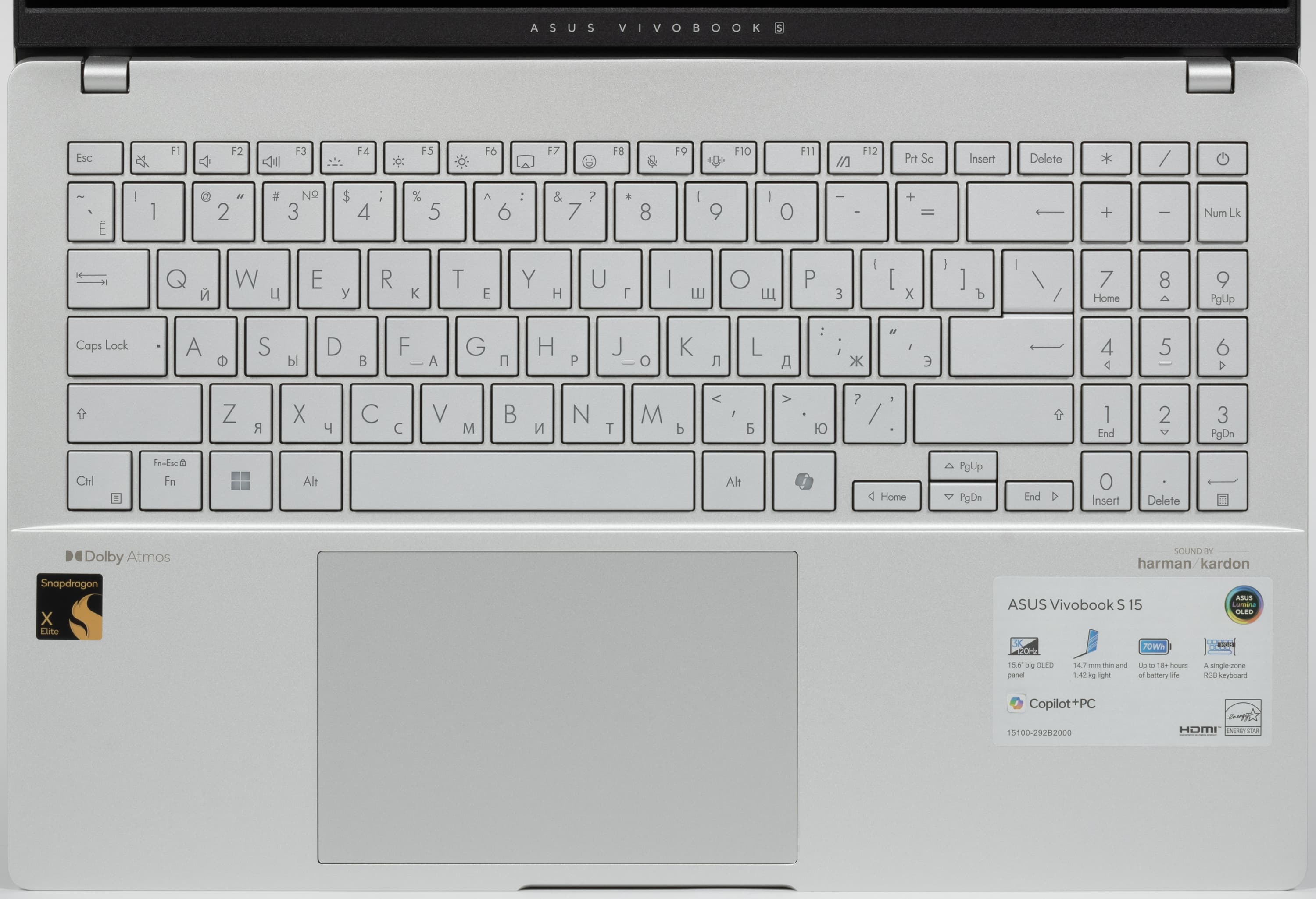 В составе платформы Snapdragon X Elite 78-100 имеется интегрированный видеоускоритель Qualcomm Adreno. Он не может соперничать с дискретной графикой, но Asus Vivobook S 15 S5507QAD и не является игровой машиной.