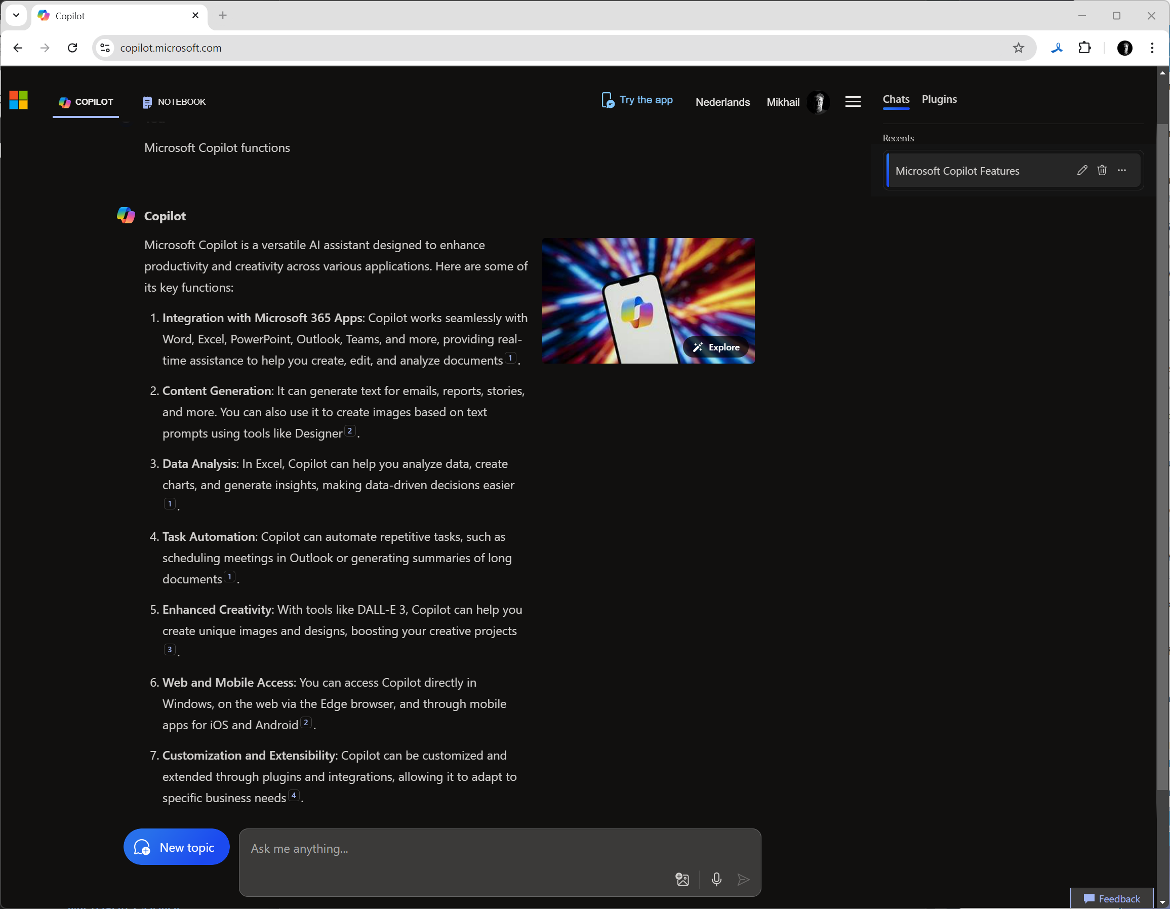 Инструменты на базе ИИ, доступные с ноутбуком (ультрабуком) Asus Vivobook S 15 (S5507QAD), можно объединить в две категории: реализованные на уровне «железа» (управление разгоном вычислителей, энергопотреблением системы, яркостью экрана) и созданные «надстройкой» в виде ПО и облачных служб. Последние реализует Microsoft Copilot, интегрированный в среду и приложения Windows и обеспечивающий нижеследующее: