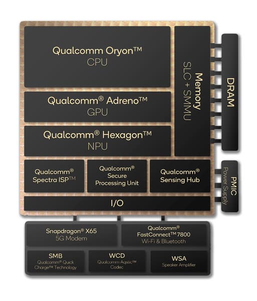 | Процессор | Snapdragon X Elite 78 100 (12C/12T) до 3,4 ГГц, TDP 45 Вт, нейронный вычислительный блок Qualcomm Hexagon NPU (до 45 TOPS) | |