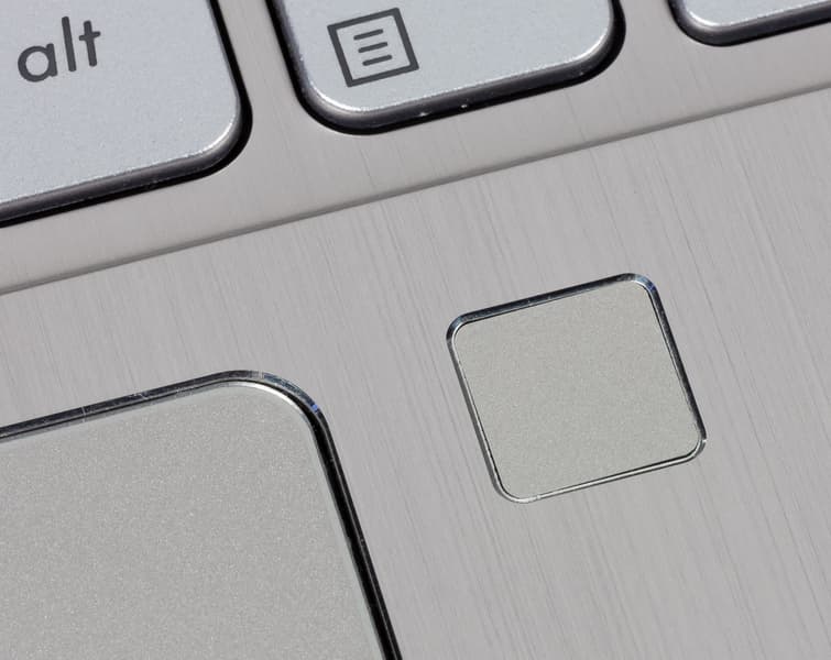 У правого верхнего угла тачпада расположен сканер отпечатков пальцев.