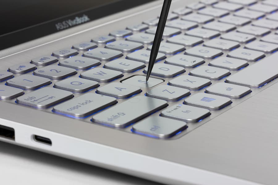 Кнопка включения питания расположена в правом верхнем углу клавиатуры.