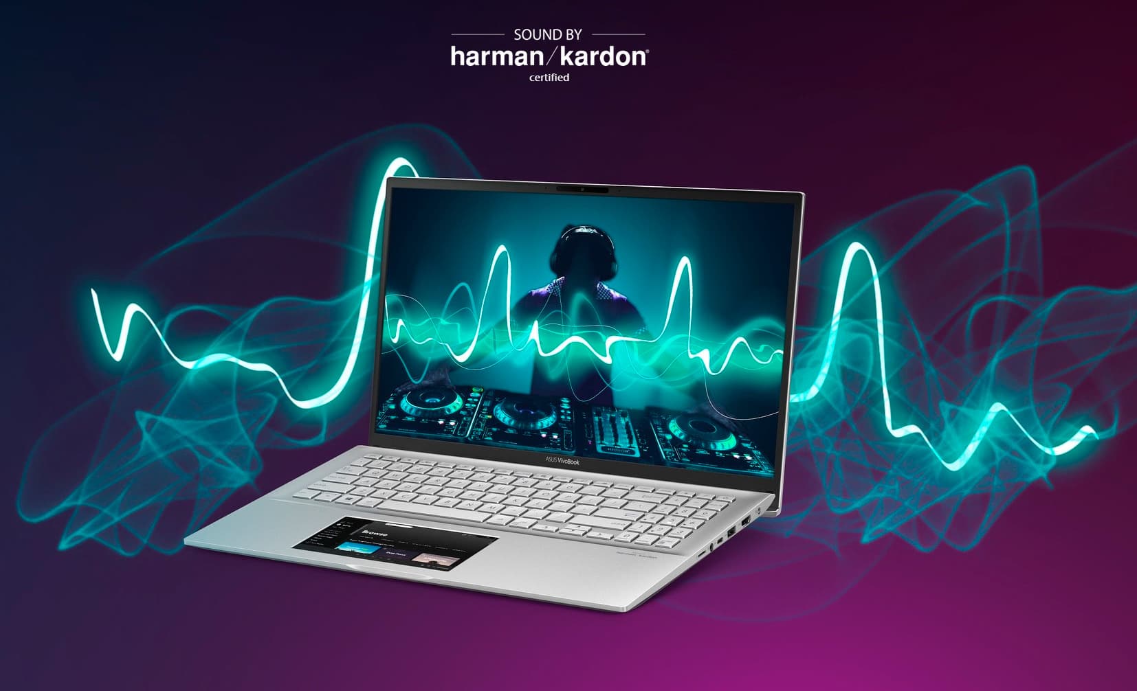 В плане звукового тракта отличий Asus VivoBook S532F в сравнении с ZenBook 14 UX434F нет. Здесь установлена такая же аудиосистема SonicMaster, сертифицированная специалистами фирмы Harman Kardon. Два стереодинамика с эффектом пространственного позиционирования, дополненные интеллектуальным усилителем, встроены в основание ноутбука.
