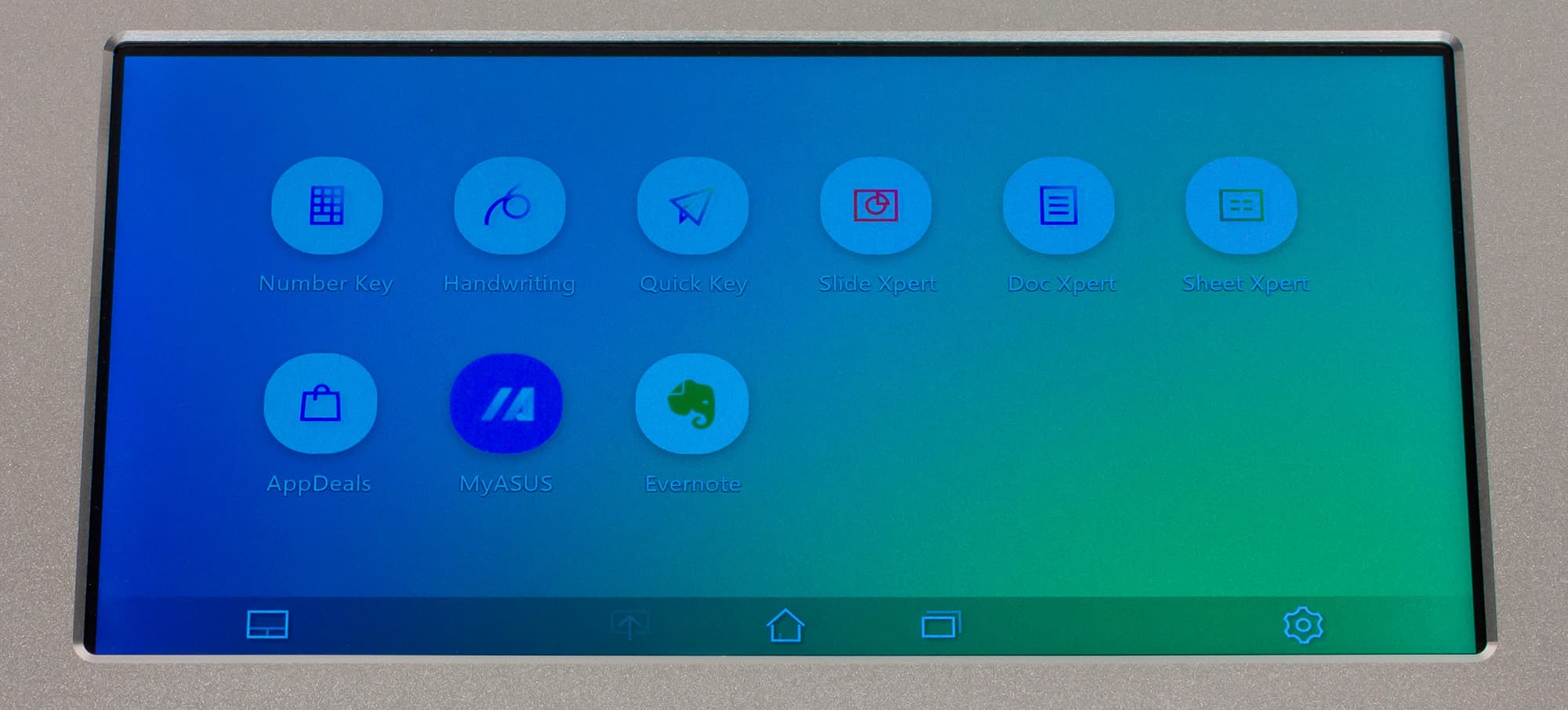 Матовая поверхность экрана-тачпада и небольшой размер пикселей у него приводят к появлению выраженного «кристаллического» эффекта — микроскопической вариации яркости и цвета, меняющейся при малейшем изменении угла обзора. Этот эффект настолько сильный, что фактическая четкость этого экрана ниже возможной для такого разрешения. Основной экран, напротив, характеризуется высокой четкостью и отсутствием «кристаллического» эффекта.