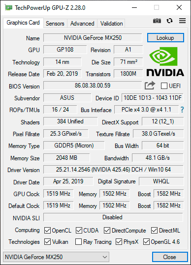 А для простеньких игр — «видеокарта» Nvidia GeForce MX250 с 2 ГБ GDDR5 на 64-битной шине с эффективной частотой 6 ГГц.