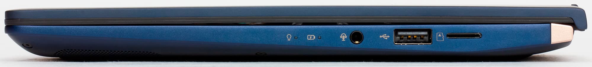 Слева можно найти разъем для подключения адаптера питания, видеовыход HDMI и два порта USB 3.1 Gen2 (Type-A и Type-C).