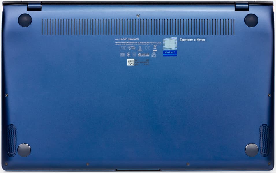 Asus ZenBook 14 UX434F — компактная модель размерами 319×199×17 мм и весом 1,3 кг (по официальным данным — 1,26 кг), облаченная в металлический корпус темно-синего цвета.