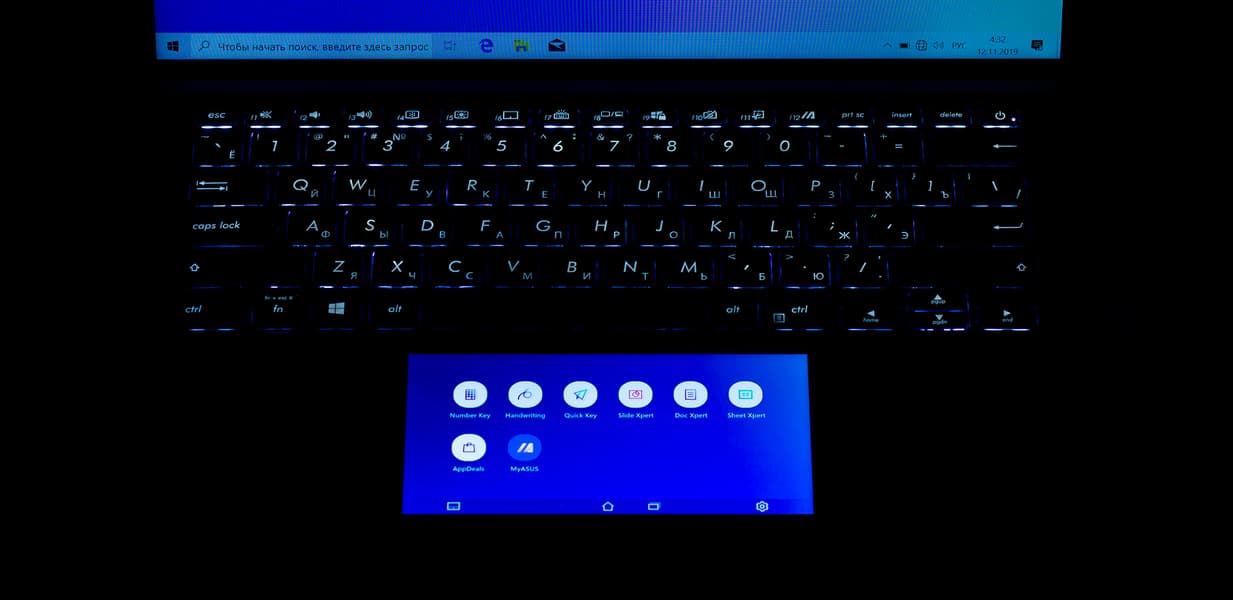Однако основная фишка данной модели — дополнительный дисплей ScreenPad 2.0. Все, кто видел этот ноутбук у автора, задавали примерно такой вопрос: «Теперь ноутбуки будут со встроенными смартфонами?» И природа этой фразы далеко не шуточная, посмотрите сами на эту «альтернативу тачпаду».