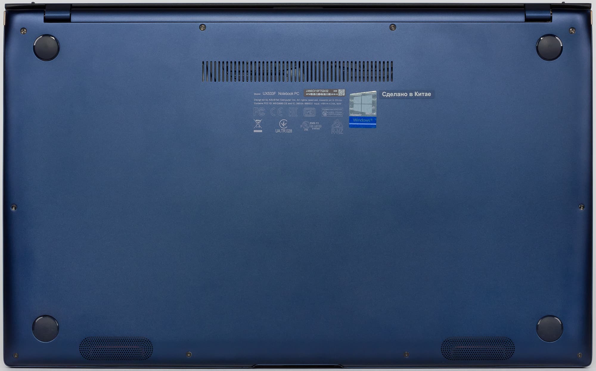 Нижняя металлическая панель корпуса сделана матовой и имеет такой же цвет, как и крышка корпуса. На этой панели, закругленной к краям, есть лишь сетки динамиков и вентиляционные отверстия.