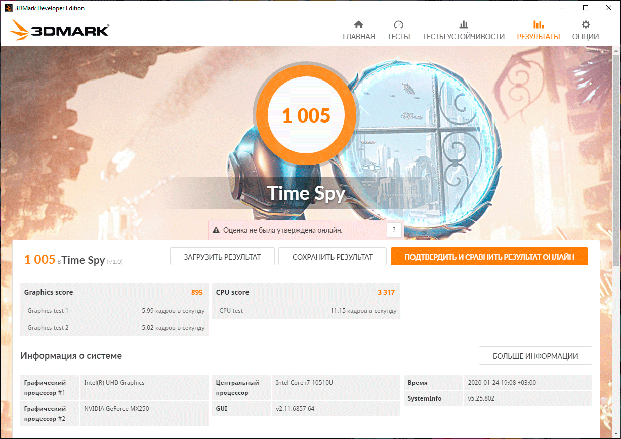 Производительность Asus ZenBook Duo UX481F мы проверили в семи бенчмарках и двух играх при работе от электросети и от аккумулятора. Разницу в производительности ноутбука вы можете видеть на приведенных скриншотах.