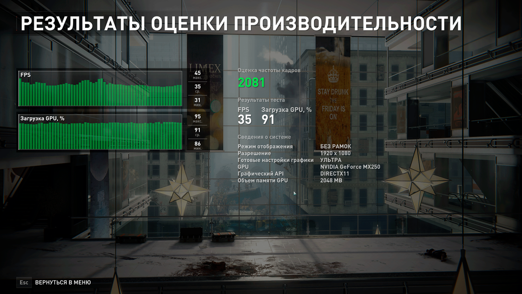 Для не новых игр со средними настройками качества графики предусмотрена дискретная видеокарта Nvidia GeForce MX250 (10-ваттная версия), оснащенная двумя гигабайтами GDDR5 производства Hynix (маркировка H5GC8H24AJR) на 64-битной шине с эффективной частотой 6 ГГц.
