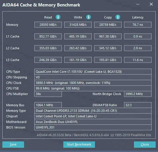 В плане оперативной памяти возможны варианты Asus ZenBook Duo UX481F с 8 или 16 ГБ, но это всегда будет DDR3. В предоставленной нам на тестирование версии ноутбука распаяно 16 ГБ памяти в четырех микросхемах Micron с маркировкой 9RB47 D9SVW.