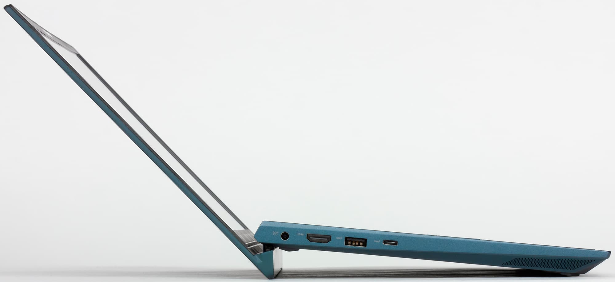 На левый торец выведены разъем питания, видеовыход HDMI версии 2.0, а также порты USB 3.2 Gen2 (Type-C и Type-A).