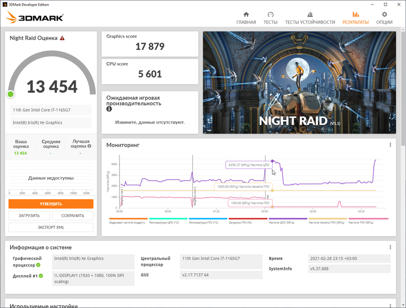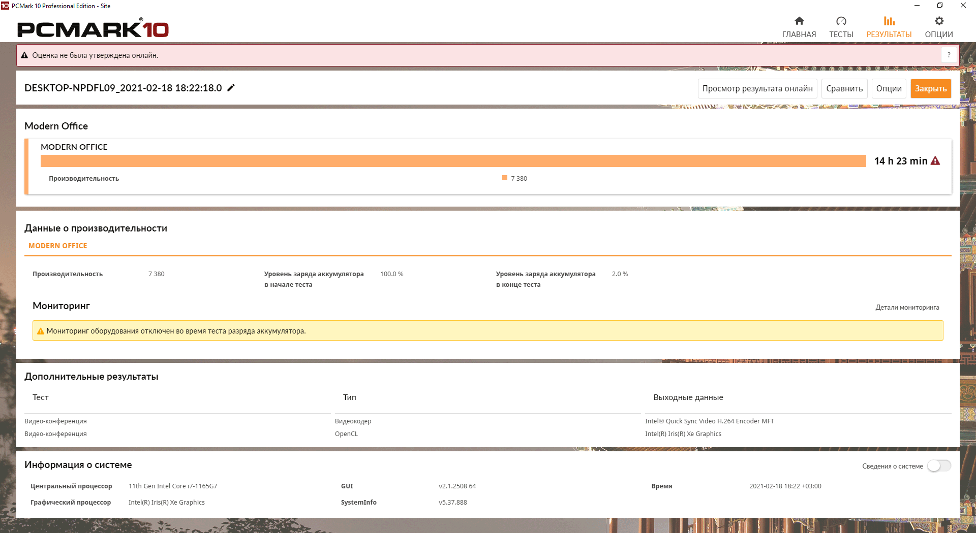 | Тест | Референсный результат | Asus ZenBook Flip 13 UX363EA (Intel Core i7-1165G7) | Asus ZenBook 14 UX435EG (Intel Core i7-1165G7) |