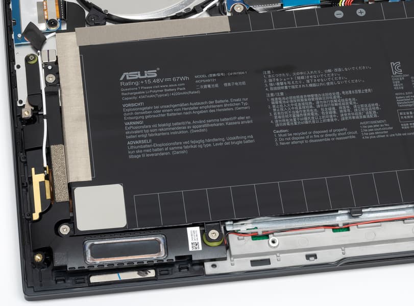 Мы тестировали ультрабук при яркости экрана 100 кд/м² (что в данном случае эквивалентно 44%) в тестовом пакете PCMark’10. Сетевые соединения и звук не отключались. В эмуляции офисной работы (тест Applications) до полного отключения ультрабук проработал почти 15 часов, а также 3,5 часа при тестировании игровой производительности. Великолепные результаты!